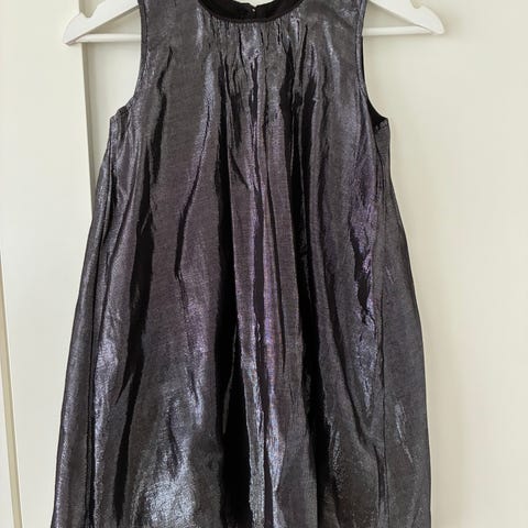 Myydään ihana mekko talven juhliin tytölle. Kokolapun olen leikannut, mutta tytär käytti tätä 12-vuotiaana (ks. kuva). Päälikangas kevyt, hieman läpinäkyvä, alla musta alusmekko. Vyötäröllä kiristysmahdollisuus.