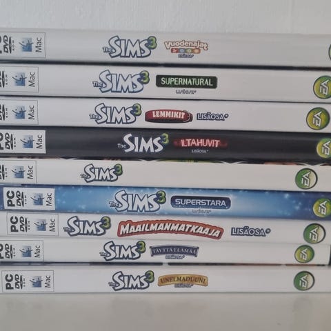 Sims 3 pääpeli ja kuvan sims 3 lisäosat mieluiten myydään pakettina mutta voin myydä myös erikseen. Pelit hyvässä kunnossa