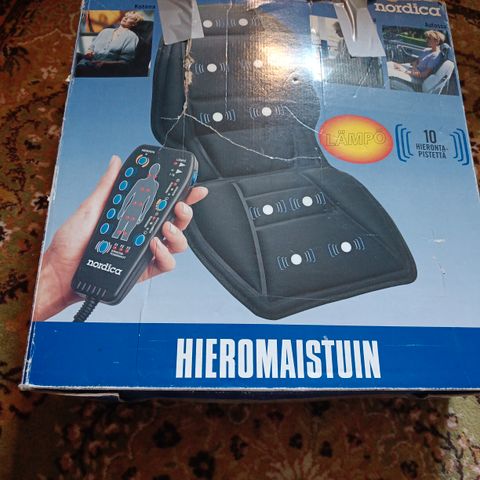 Vähän käytetty ja toimiva hierontaistuin, lukuun ottamatta lämpöominaisuutta joka toimii vain osittain. Istuimessa on erilaisia hierontaominaisuuksia. Asetetaan esim. nojatuoliin.