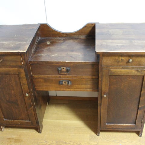 Ajan patinaa,ehkä tiikkinen,ihan kohtuu siisti ja ehjä.