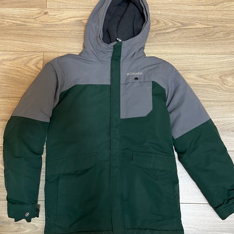 Columbia Sportswear -merkin lasten talvitakki sinisenä, koko junior XL, vastaa noin 164 cm. Sopii myös 160-170 cm aikuiselle. Takissa on vetoketjukiinnitys ja hupussa tekoturkisreunus. Materiaalitiedot löytyvät pesuohjetarrasta.