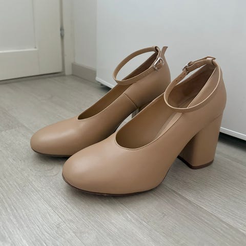 Tosi siistissä kunnossa, mielestäni eivät uusille häpeä! Mukavat jalassa ja hyvä kävellä. Kevyt säädettävä nilkkaremmi. Mukaan alkuperäinen laatikko + kangaspussi.