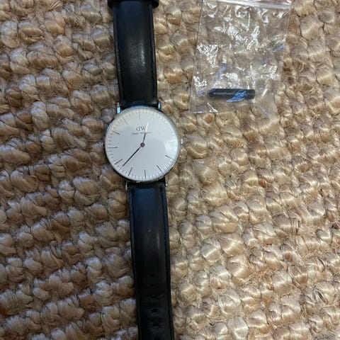 Daniel Wellington miesten rannekello, jossa on valkoinen kellotaulu ja ruskea nahkaranneke. Kellossa on minimalistinen design, hopeanvärinen kellonrunko ja perinteinen analoginen näyttö. Sopii arkipäivän käyttöön ja muodollisempiin tilaisuuksiin. Patterit loppu. TARJOA