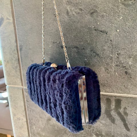 Aivan uusi pieni kaunis laukku. Pitkä hihna puuttuu. Laukkua kannetaan myös kauniista hopeisesta renkaasta.