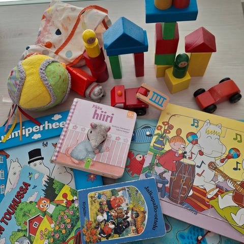Myynnissä muuton alta pois, tarpeetomana jääneet taaperon lelut ja palapelit. Kaikki osat pitäisi olla tallella.