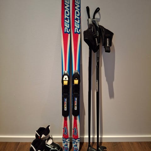 Kaikissa käytetty kunto, toimivat silti edelleen loistavasti. Sukset huollettu vuosittain, pohjissa ei isompia vekkejä tai naarmuja. Siteet pikakiinnityksellä.