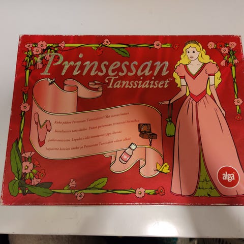 Prinsessa lautapeli, hyvässä kunnossa. Pelissä muuten kaikki osat mukana, mutta mukana vain kaksi kuudesta pelinappulasta