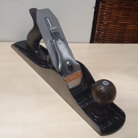Made In Britain käsihöylä kokoa 4. Takakädentuen ruuvi hieman kiero, mutta tukeva kun kiinni saa. En itse ole käyttänyt, torista ostin, mutta ei tullutkaan aloitettua harrastusta. Tuntuu terävältä.