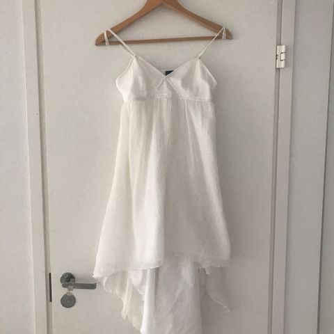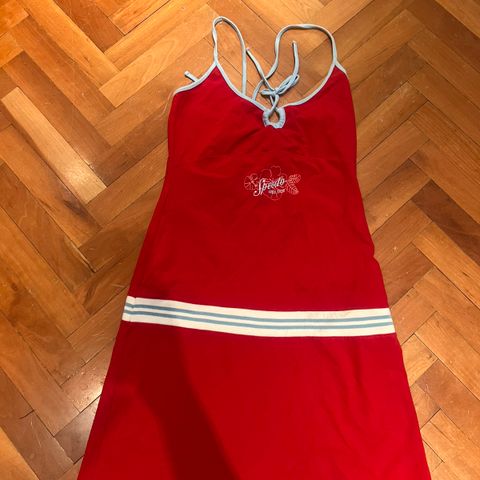 Yhdellä reissulla käytetty tummansininen kiva rantahuitula, jossa edessä koristeena tuollaiset solmittavat tupsut.