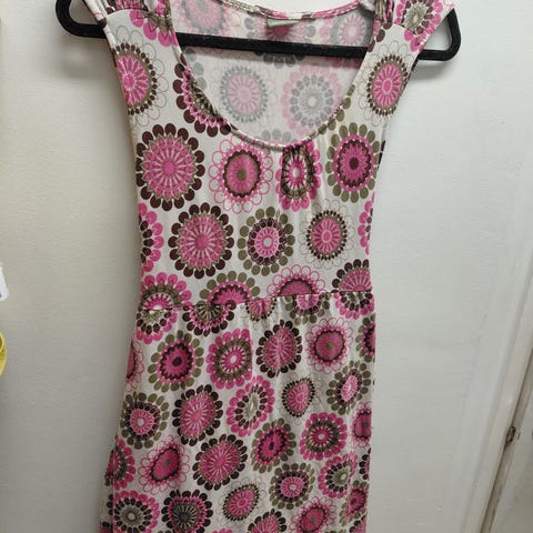 Siistikuntoinen, hauska isoäidinneliöistä virkattu värikäs minihame.