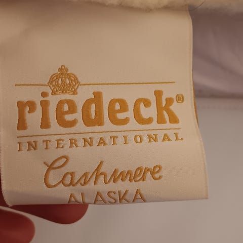 Myydään kuvan mukainen Riedeck "Kuninkaallinen vuode" Cashmere villapeitto.