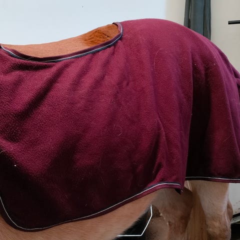 Käyttämätön tummansininen hööksin fleeceratsastusloimi (”pyllyloimi”). Kiinnitys soljilla satulavyöhön. Full-kokoinen.