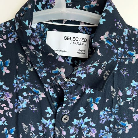 Selected Homme, slim fit, koko L/42. Tuollaista pientä ruutu / raita kuviota, punaista, sinistä. Hutiostos, ei pidetty kertaakaan.