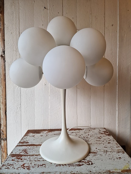 Sähköjen puolesta täysin kunnostettu ja tarkistettu, johto uusittu, kaksoiseristetty. Sopii nykyaikaiseen pistorasiaan. Lampun kanta E27, max 40W.