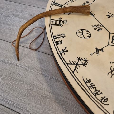 Myyntiin aikoinaan saatu matkamuisto/sisustuselementti. Noitarumpu on perinteinen Lapin matkamuisto, jonka historia menee vuosisatojen päähän. Käsin Suomessa valmistettu noitarumpu tulee tyylikkäässä kelo lahjarasiassa.