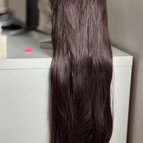 Myydään uudet peruukit, punamusta ja violetti 6 euroa/kpl. Hiusverkko tulee mukaan.