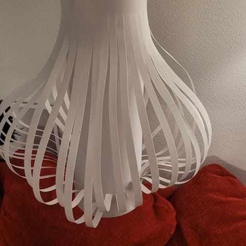 Kattovalaisin kankaisella varjostimella, joka on valkoinen ulkoa ja pinkki sisältä. Pistoketulppa mukana