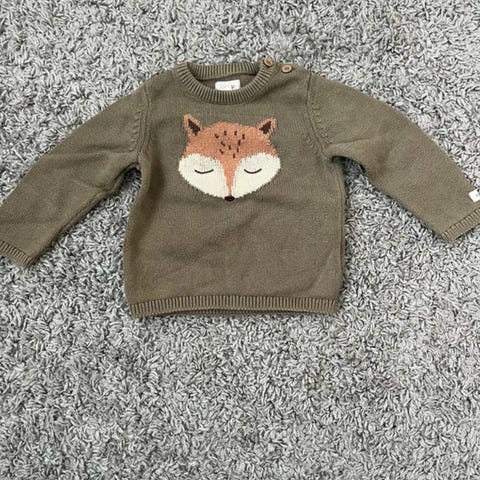 Newbie hyväkuntoinen ihana Vihreä lasten neulepaita, koko 80, unisex. Neulepaita on valmistettu pehmeästä materiaalista ja siinä on kuviona kettu. Sopii 9-12 kuukauden ikäisille lapsille.