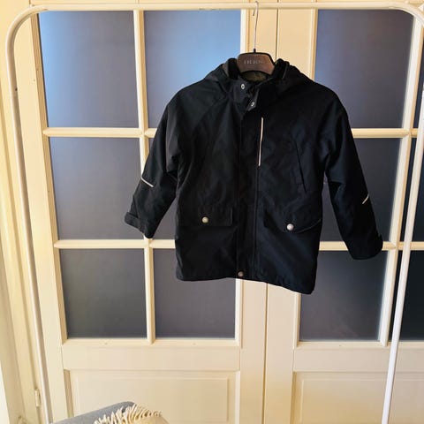 Myydään kahdella lapsella käytössä ollut kuoritakki. Takki on vedenpitävä ja saumat teipatut. Hihansuissa pientä tummentumaa. Takki on siisti ja hyvässä kunnossa.