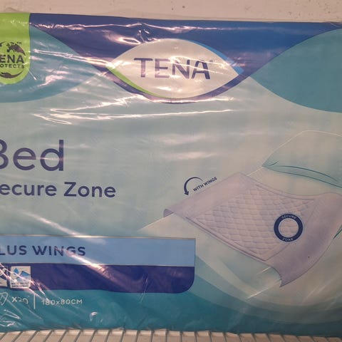 TENA Bed Secure Zone Suojapeite 60x40cm on kertakäyttöinen suojauspatja, joka suojaa sänkyä kosteudelta. Patjassa on pehmeä ja imukykyinen pinta, joka tarjoaa mukavuutta ja tehokkaan kosteussuojan. Soveltuu käytettäväksi vuoteissa, leposohvilla, tuolien päällä ja pyöratuoleissa. Pakkaus sisältää 30 suojauspatjaa.