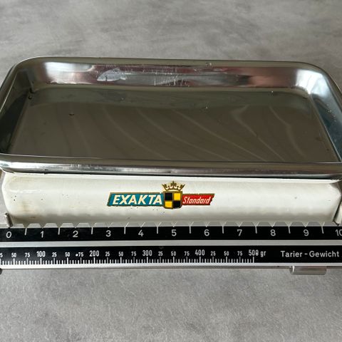 Erinomaisessa kunnossa oleva retro EKS keittiövaaka, valmistettu Ruotsissa. Vaaka on punainen ja siinä on ruostumattomasta teräksestä valmistettu vaakalauta. Maksimikantavuus on 12,5 kilogrammaa. Soveltuu keittiön käyttöön elintarvikkeiden ja muiden pienten esineiden punnitsemiseen.