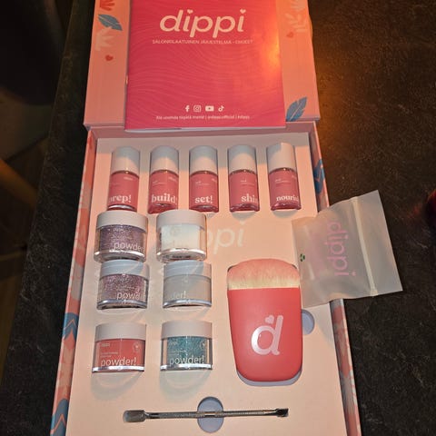 Setillä on tehty yhdet kynnet sekä mukana tuleva väriviuhka. Ei sisällä hygieniasyistä harjaa, viiloja eikä kynsinauhatyökalua. Sisältää ultimate kittiin kuuluvien lisäksi clean puhdistusaineen siveltimille sekä yhden ylimääräisen värin. Mukana tulevat värit: Jetsetter, Boujee, Oak, Khaki, Fall, Pillow Talk, Peachy, Envy, Clear x2. Myydään vain settinä.