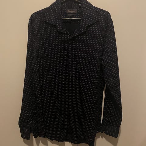 Dressmann M-kokoinen Musta miesten lyhythihainen paita. Paidassa on pieni kuviointi ja rintatasku. Kauluksellinen t-paita.
