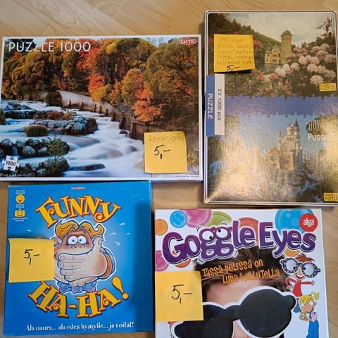 Myydään lautapelisetti, jossa useampia pienemmille lapsille suunnattuja pelejä. Osat tarkistettu ja ovat tallella. Joissakin peleissä jonkin verran kulumisen jälkiä.