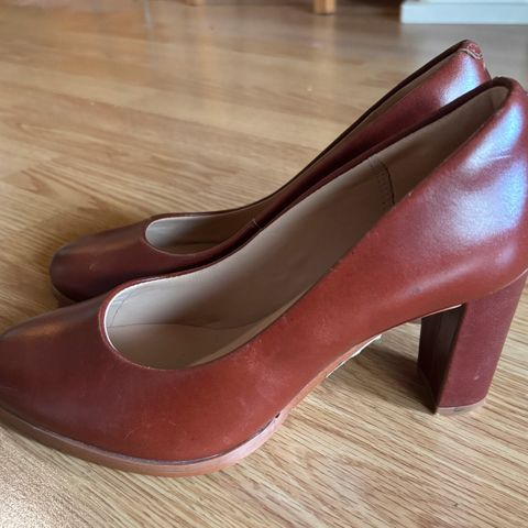 Myydään kauniit, tummansiniset Clarks-korkokengät, mokkaa, koko 37.