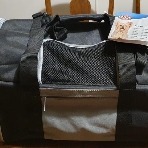 Basic Trek Koiran kuljetusreppu sininen kangas 44x31 cm. Laivastonsininen kantoreppu, joka on suunniteltu kuljettamaan koiraa. Reppu on valmistettu kestävästä kankaasta ja siinä on vetoketjulla avattava päällinen sekä säädettävät olkahihnat. Sisäpuolella on lyhyt remmi, joka voidaan kiinnittää koiran valjaan. Reppu sopii enintään 8 kg painoisille koirille.