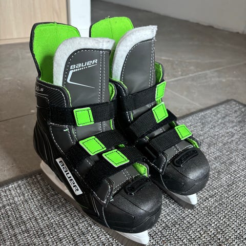 Kuin uudet, kaksi kertaa käytetyt bauerin lasten luistimet tarrakiinnityksellä. Luistimet myös teroitettu.
