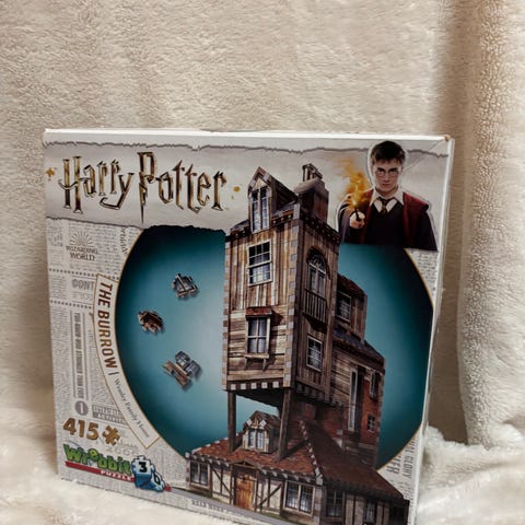 Harry Potter Viistokuja / Diagon alley 3D palapelit, 4kpl koottuna. Materiaali jotakin kevyttä hieman pahvinkaltaista. Tästä pienoismallit jonkun toisen Harry Potter -fanin hyllyä koristamaan tai vaikka Halloween- tai synttärirekvisiitaksi. Jokunen pieni detalji vielä kaipaa kiinnittämistä (vielä kiinni levyissä irrottamatta) ja osa uudelleenkiinnitystä (jos haluaa kestävän voinee palat liimata kiinni). Kaikki osat pitäisi olla tallella (en kuitenkaan uskalla vannoa 100% ettei joku minipieni yksityiskohta ole matkalla kadonnut). Ollut lapsen hyllyssä koristeena. Pölyt saa kaupan päälle 😉 Vain nouto Matarista Itä-Vantaalta.