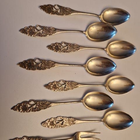 Kahvilusikat alpakkaa, palkinto lusikoita -60-70 luvulta. Joissakin kaiverrukset. Tummuneet kaapissa.Tästä vaikka korujen valmistukseen. Mahdolliset toimituskulut ostajalle.