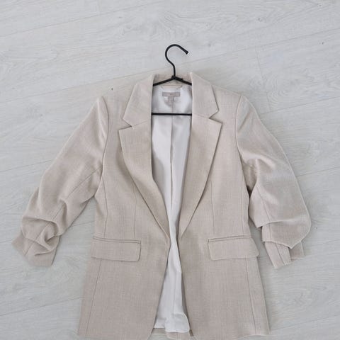Lyhythihainen H&M bleiseri, väri beige. Koko pienehkö 38, joustaa vähän. Kainalo-kainalo 44 cm, olka-helma n.50 cm.