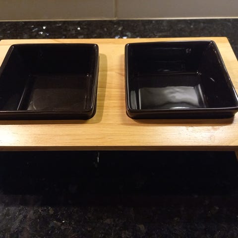 Myydään käyttämätön jalkoja säädettävä koirien ruoka baari. Hotkimisen esto ruoka kuppi osa ja läiskymätön vesikuppi.
