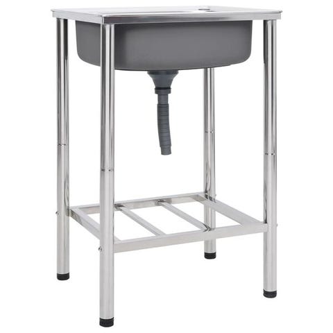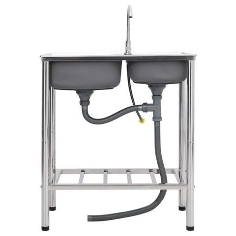 Tässä leirintäalueen pesualtaassa on kaksi allasta, viemäri ja hana. Se on täydellinen valinta ulkokäyttöön.