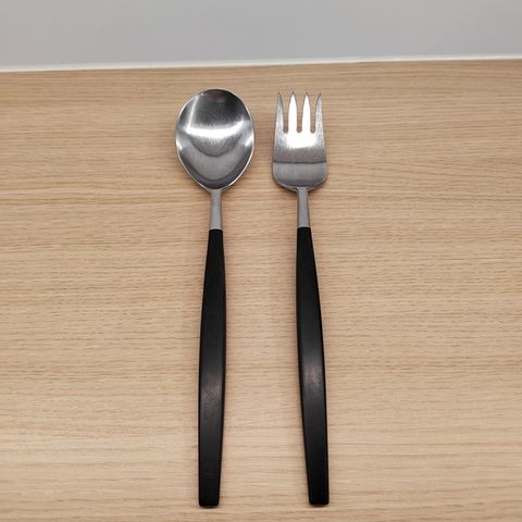 Cathrineholm Cathedral salaattiottimet, norjalaista designia. Uudet. Terästä ja valkoista emalipinnoitetta varsissa, konepesua ei suositella tämän vuoksi.