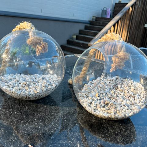 Myydään kuusi kappaletta ripustettava lasipalloja, joihin voi laittaa sisään tuikun / ilmakasvin. Olleet käytössä häissä. Kunto oikein hyvä