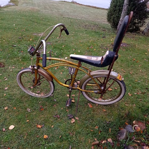Torista käytettynä ostettu ja vuosiksi varastoon lojumaan jäänyt polkupyörä. Tankoon jäänyt koodilukko jonka koodia en muista. Etukumi tyhjä/ puhki? Satula rikki. Takavanteessa lommo ( näkyy kuvissa). Käsijarru vaatii jotain säätöä, nyt tahtoo jäädä hieman jumittamaan takarengasta. Takarenkaan koko 20x 4 1/4. Eturenkaan koko 24 x 2.10.