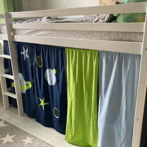 Myydään puinen puoliparvisänky. Ostettu Vekestä ja vain meillä ollut. Sängyn saa myös matalaksi, siitä myös kuva. Voidaan myydä purettuna tai osittain kasattuna (matala sänky).