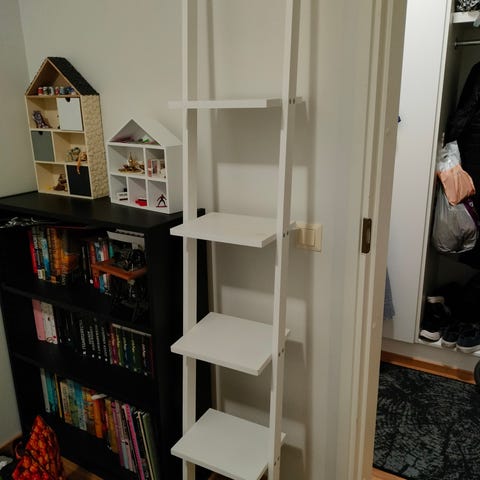 Meillä ollut kylpyhuoneessa.Mahtuu säilyttämään monen ihmisen kylpypyyhkeet.5 tikasta.Materiaali puuta ja metallia.Kunto erinomainen.Nouto Länsi-Herttoniemestä.