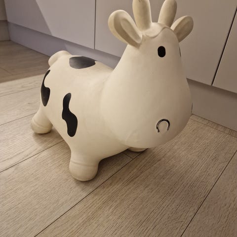 Meidän lapsien rakastama pomppu-lehmä. Hyväkuntoinen. Nouto Vuorentaustasta tai postitus toridiilillä/postikuluja vastaan