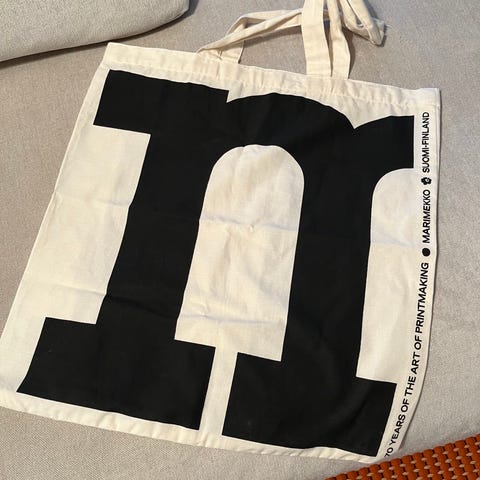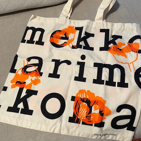 Uusi käyttämätön Marimekon logokassi.