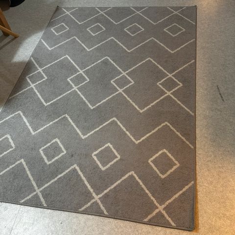 Pieni siisti matto, jossa on harmaa pohjaväri ja valkoinen, harmaa sekä musta puoliympyräkuviot. Soveltuu erilaisiin sisustustyyleihin ja tiloihin. Pesty äskettäin.