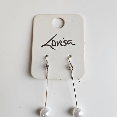 Pitkät korvakorut, joissa on kristalleja ja kyyneleenmuotoisia tekohelmiä.