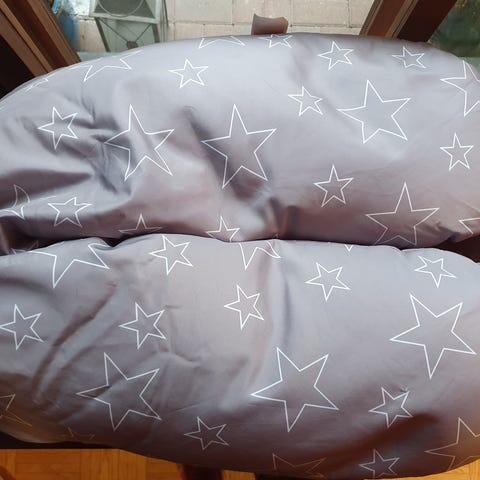 Hyväkuntoinen imetystyyny irrotettavalla päällisellä. Pesty hajusteettomasti.