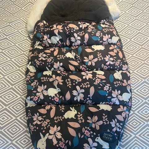 lämpöpussi musta väri, pehmeä ja lämmin materiaali, sopii käytettäväksi lastenrattaissa. Lämpöpussissa on vetoketju joka avautuu kokonaan.