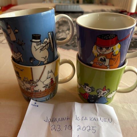 Myydään 3 muumimukia, yhteishinta 60e. ehjät ja hyväkuntoiset.