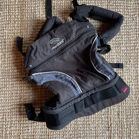 Neljä lasta hyvin palvellut Manducan kantoreppu. Monipuoliset säädöt, sopii 3,5-20 kg painoiselle. Meillä oli tosi paljon käytössä, pienestä lähtien. Sen saa yksin päälle ja pois, ja siinä jaksaa kantaa pitkiäkin aikoja.