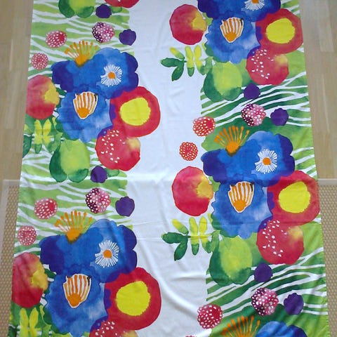 Kuvan Marimekon pöytäliina / kangas, koko 135 x 133 cm. Siisti! Voin lähettää.